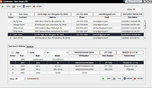 The Customer database keeps track of all your customer information. Each customer can have multiple vehicles and service schedules. In addition to adding common information, adding their VIN numbers enables you to easily research vehicle data and recalls with a single click.
