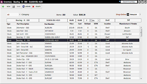Where Used - Use this feature to view what vehicles inventory items have been used on.