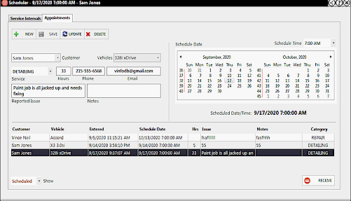 Scheduling is also where you maintain service intervals for customer vehicles. |