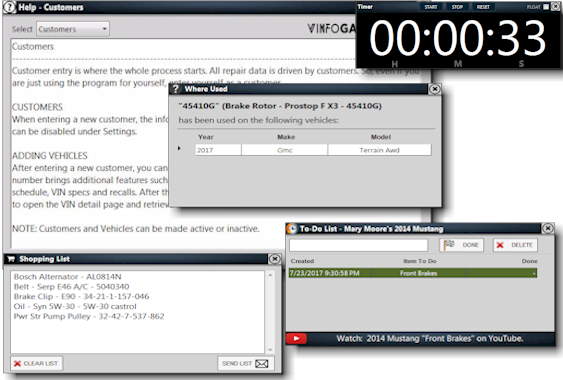 VinfoGarage captures Customer, Contact, Service, Scheduling, Invoicing and Inventory data as well as an in-depth VIN number research tool that checks for recalls as issued by the NHTSA.